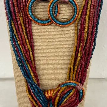 Make a vibrant statement with this 16-strand multicolor coco wood beaded necklace.