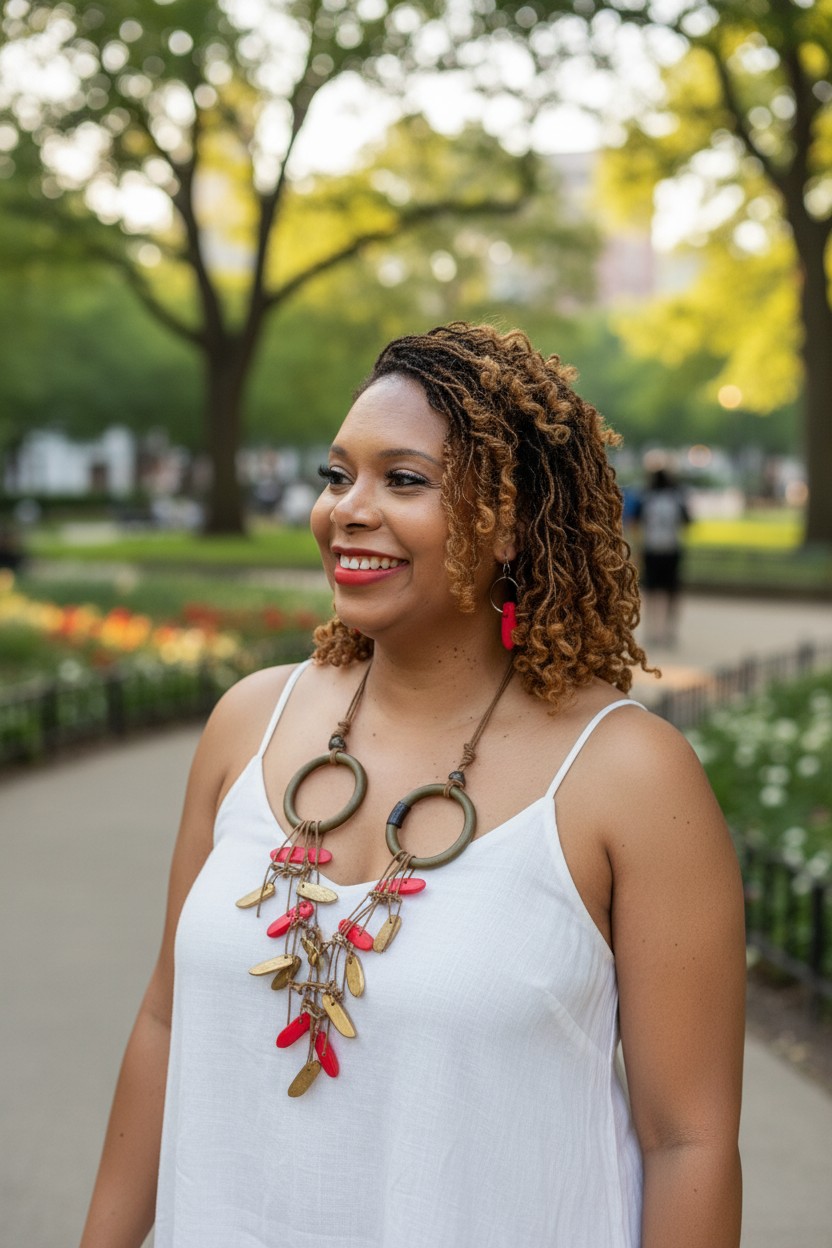 Perfect for casual wear, office outfits, or evening occasions, this necklace set blends earthy tones with bold accents to create a versatile fashion accessory.