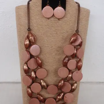 This elegant three-strand brown wax cord necklace offers the perfect balance of rustic and refined. Featuring round wooden beads enhanced with subtle gold accents, it creates a warm, organic look with a hint of shine. The layered strands add depth and movement, while the soft brown cord provides comfort and durability. Paired with matching earrings, this handcrafted jewelry set is perfect for boho, casual, or sophisticated everyday wear.