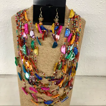 This multi-bright bead necklace is a joyful celebration of color and craftsmanship. Designed with vivid, multi-color beads and half-moon shell accents, it reflects light beautifully, creating a lively, ocean-inspired look. The handcrafted design gives it an artisanal touch, perfect for boho, beach, and resort wear. Lightweight and comfortable, this necklace set includes matching earrings—making it the perfect accessory for anyone who loves colorful, nature-inspired jewelry.