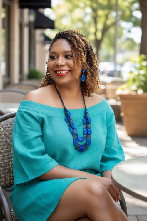 2-Strand Turquoise Cord Choker Necklace with 7 Multi-Color Wooden Beads – 16″ Length