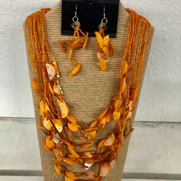 8-Strand Orange Seed Bead Necklace with Orange Half-Moon Shell Accents