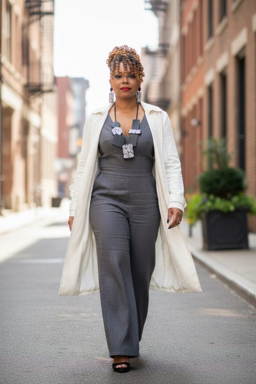 Grey Wax Cord Necklace Set with Grey and White Stripe Round Beads