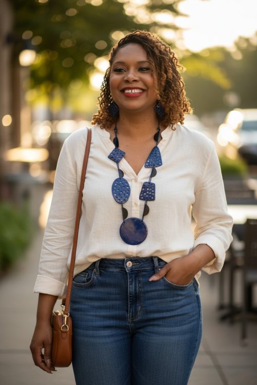Navy Blue Adjustable Wax Cord Necklace with Assorted Blue Wooden Shapes
