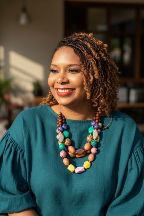 Natural Adjustable Wax Cord Necklace with Turquoise Round Beads and Wooden Accents